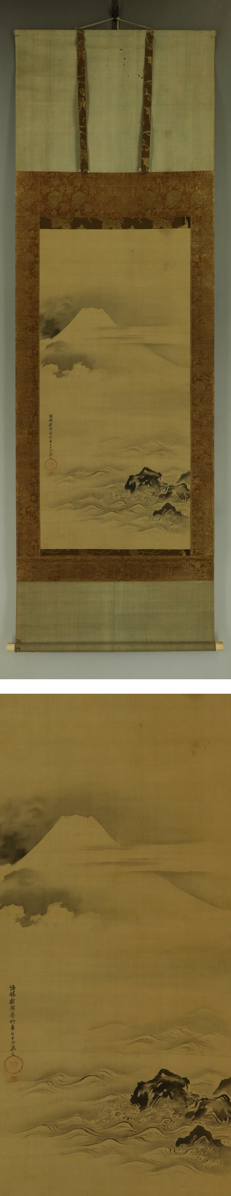 - 【模写】鶴沢探鯨【富嶽図】◆絹本◆合箱◆掛軸 s09027