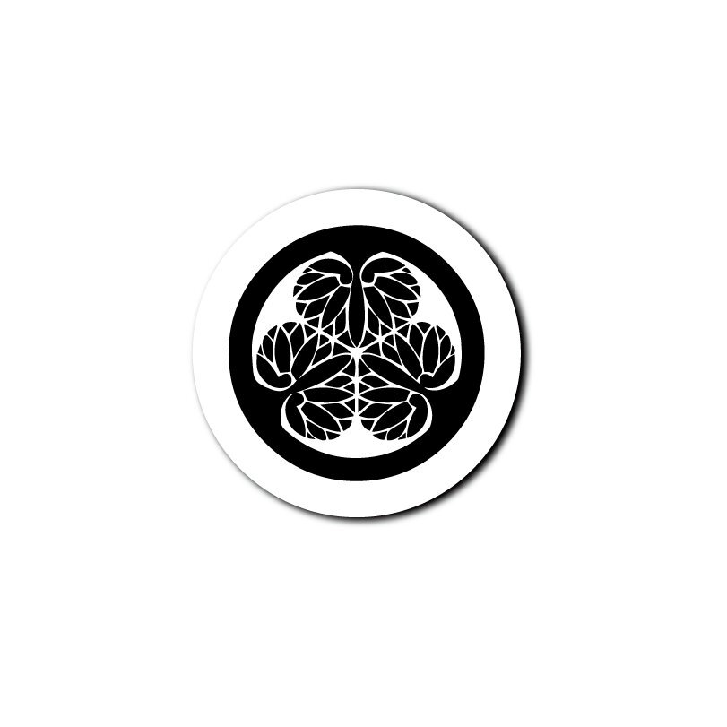 - 戦国武将 家紋 缶バッジ 44mm 1個 白フチ 徳川家康 三つ葉葵 徳川家紋 葵の御紋 徳川葵 推しグッズ 缶バッチ