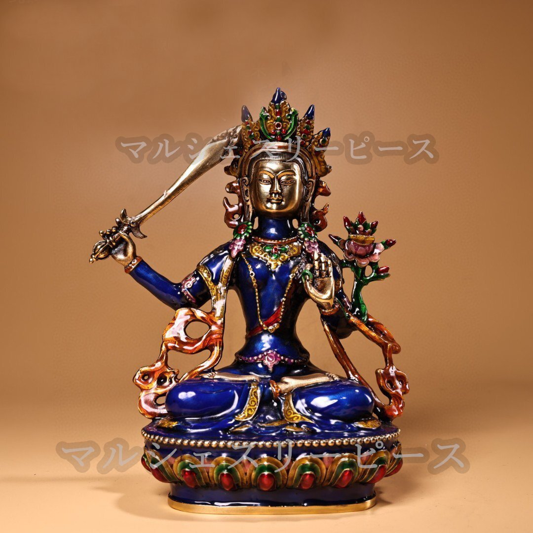 - 蔵伝純銅 景泰藍エナメル彩 文殊菩薩仏像 仏像 仏教 美術 置物 収蔵 コレクション