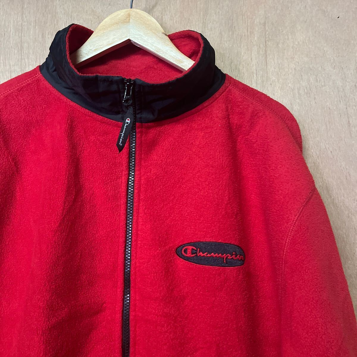 - 90s チャンピオン フリース フルジップ 刺繍ロゴ メンズサイズL champion ビンテージ