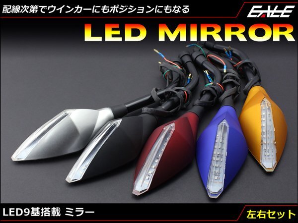 > LED(3528SMD)9基搭載 ウインカー/ポジション連動可 LEDミラー 左右セット M10正ネジ対応 つや消しブルー S-273B