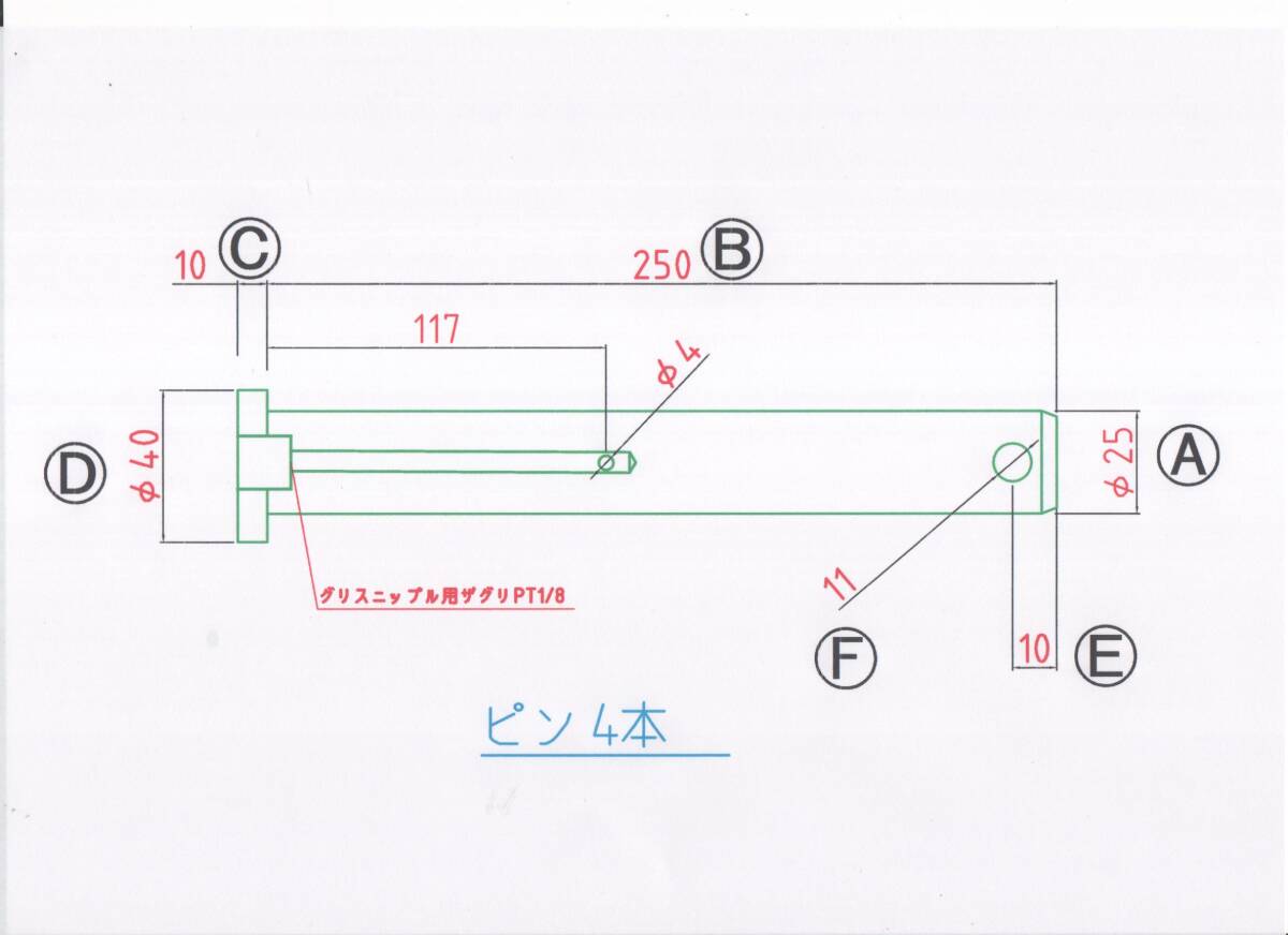 - NO 1922 Φ25用 ツバ下250mm グリス穴付きバケットピン 4本1セット