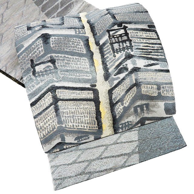 > 袋帯 未使用 正絹 フォーマル 仕立て上がり 京都 風景 町家 格子 敷石 箔糸 多色 金銀 きもの北條 A1112-11