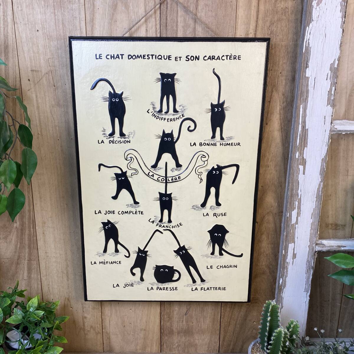 - 送料無料インドネシア手描きねこデザイン木製サインボード(40㎝×60㎝)看板パネルディスプレイ壁掛け、ネコ、猫、インテリア雑貨