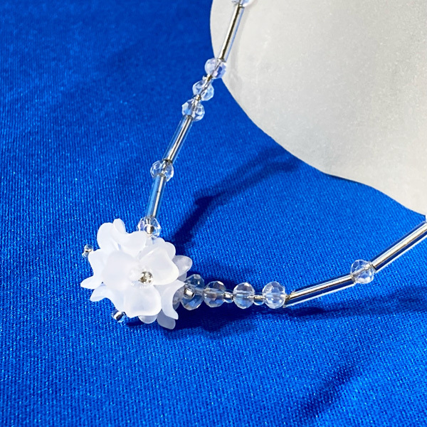- 送料無料! ネックレス クリアビーズ 花 上品 キラキラ フラワー ◇N-0067