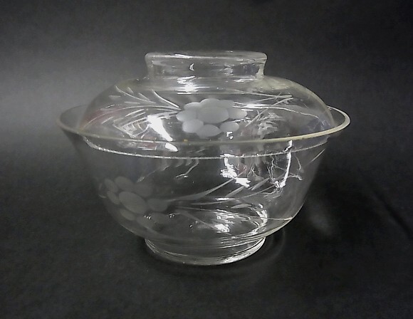 - 【P1201】明治 日本 和ガラス 蓋付 碗 カット文様 アンティーク 骨董 硝子
