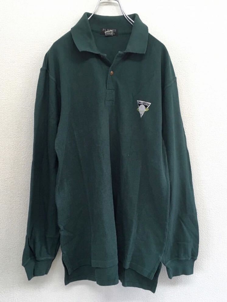 - PLANET GOLF プラネットゴルフ 長袖ゴルフシャツ グリーン メンズ Sサイズ 刺繍ロゴ