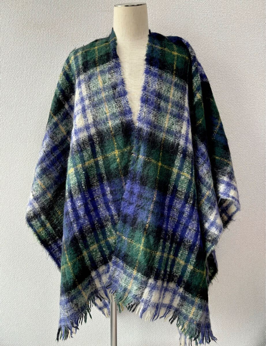 - イギリス製 ビンテージ チェック ウール ブランケット ポンチョ 英国