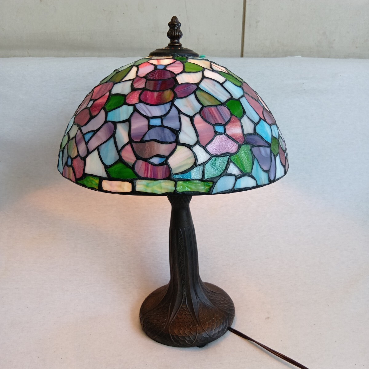> ステンドランプ ステンドグラス 花柄 大型 照明 インテリア 卓上ランプ 高さ約43cm 手造り品