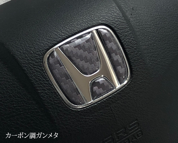 - ホンダ ステアリング エンブレムシート カーボン調ガンメタ ハンドル用 SDH-H01 樹脂盛立体3D加工 HONDA ZEROWIN