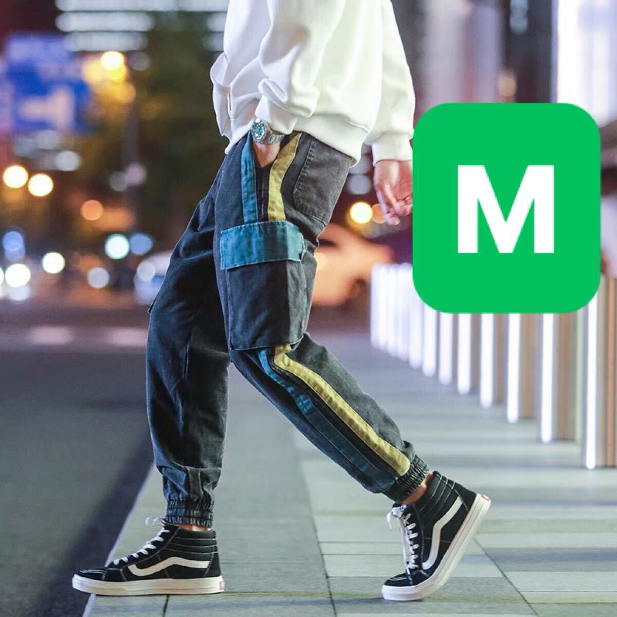 - ラインパンツ カーゴパンツ ボトムス ジョガーパンツ トレンド ストリート 渋谷 オルチャン メンズ レディース 黒 ブラック M