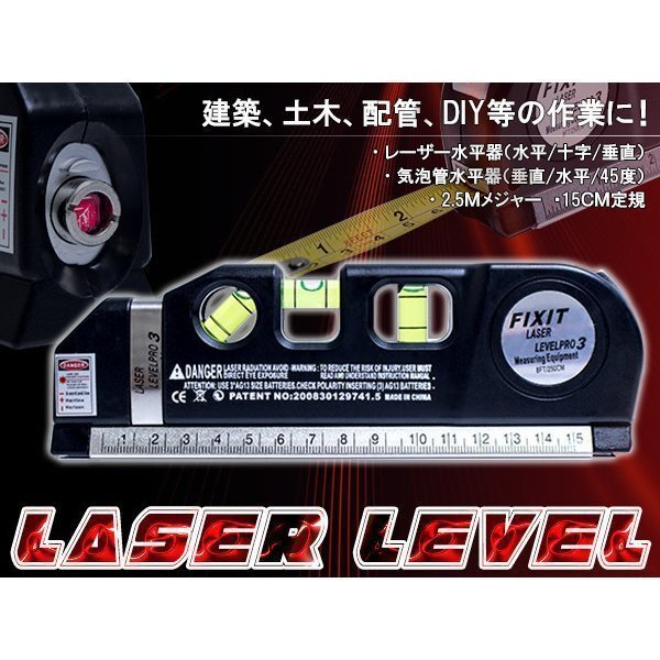 - 1台4役♪ メジャー付き レーザーレベル 水平器 ハンドスケール水準器 レーザー測定器 レーザー付きレベル 水平測定 DJ1809