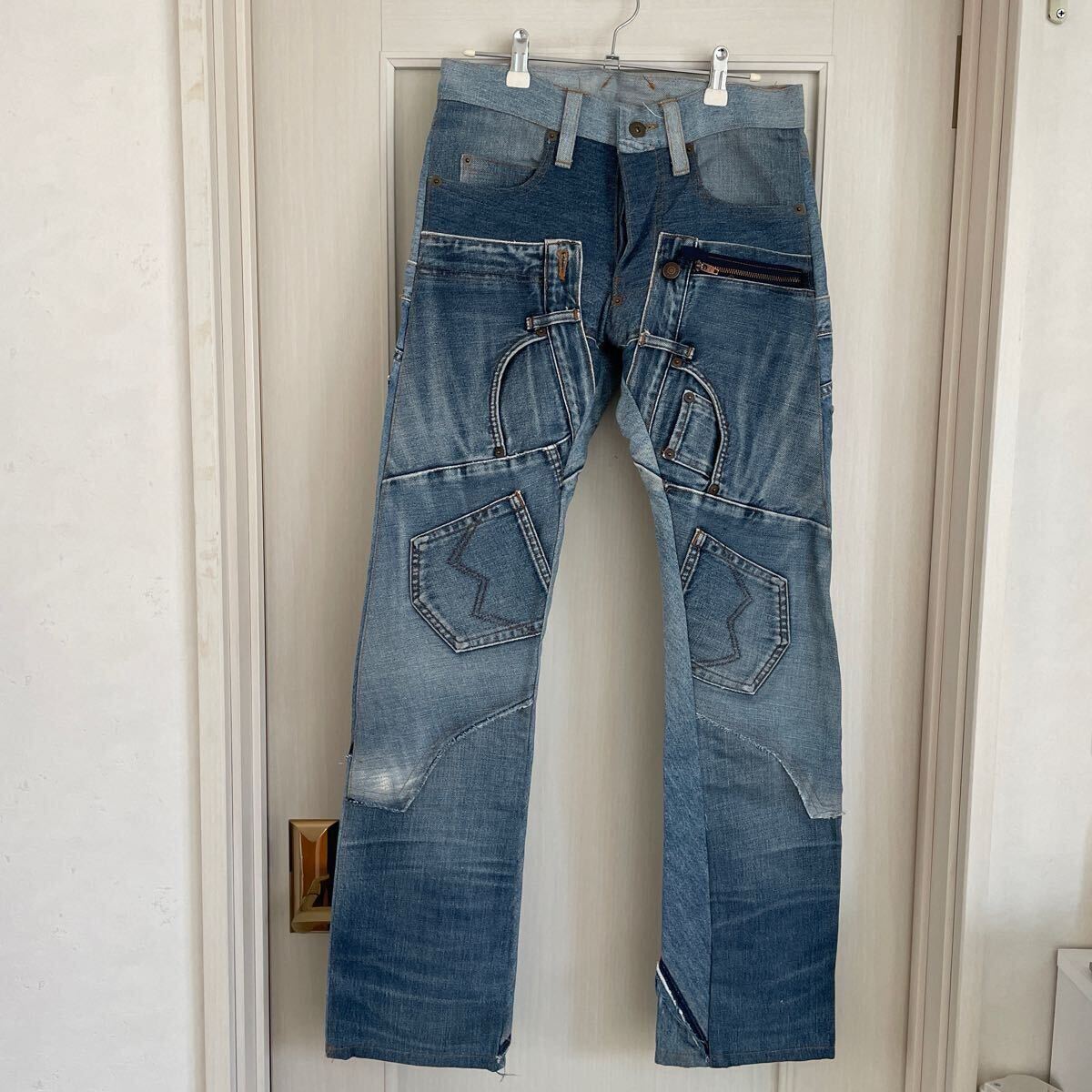 - 古着 ツギハギ デニム ジーンズ パッチワーク リメイク ハンドメイド