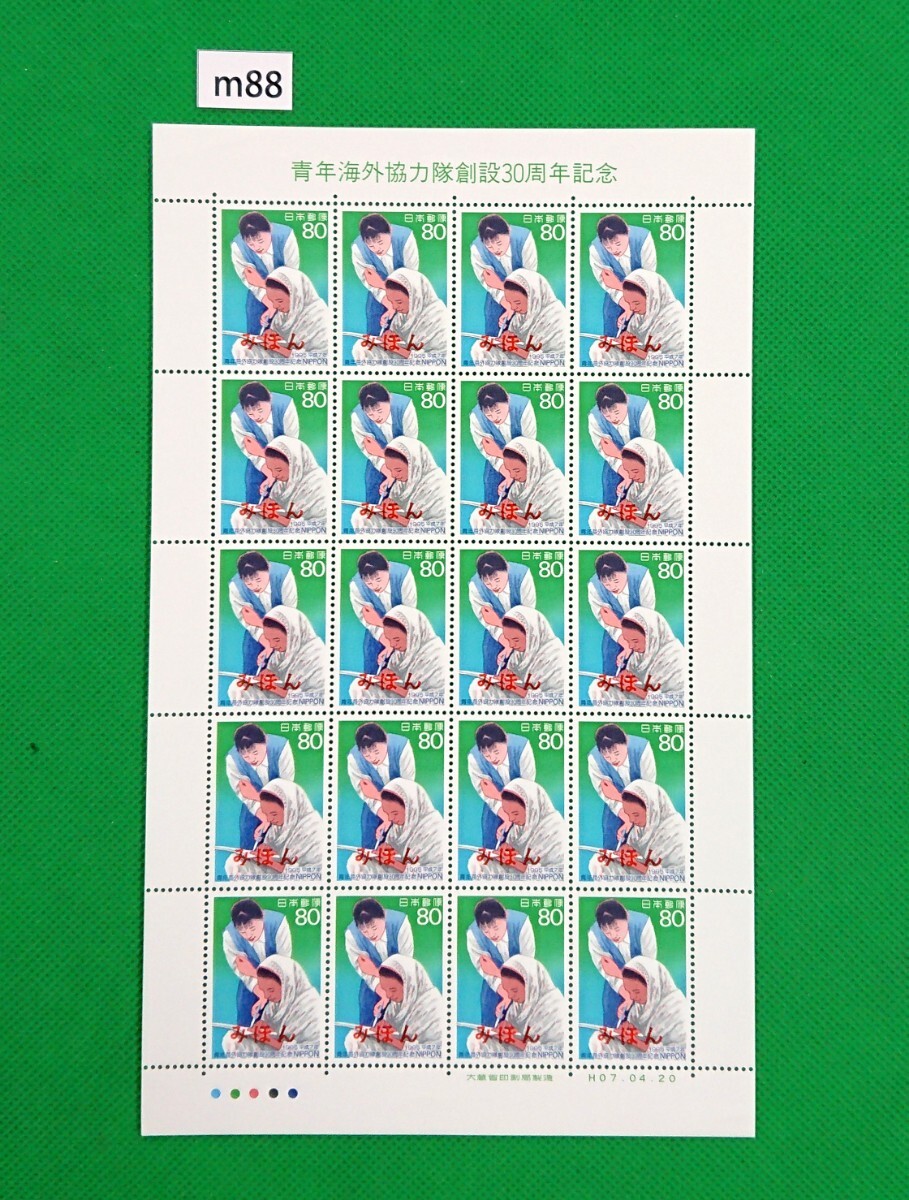 - みほん切手シート/青年海外協力隊創設30年/1995年/NH/極上美品/シミ無/シワ無/裏糊艶良好/みほん字/見本字入/見本切手/切手シート/No.m88