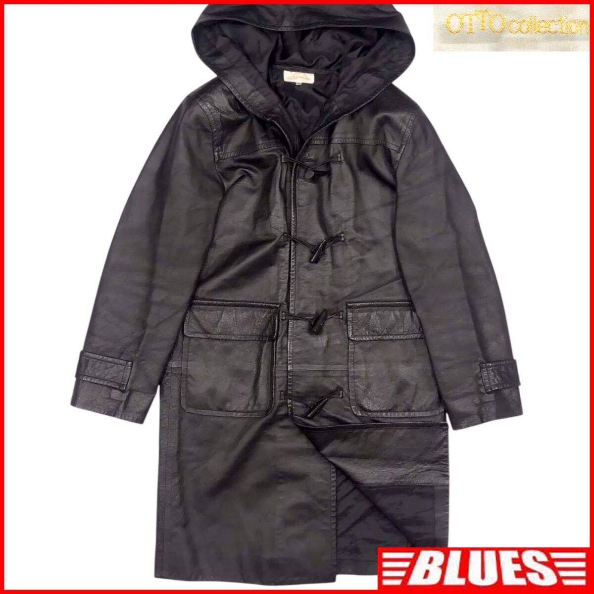 > 即決★OTTO Collection★メンズM レザーダッフルコート オットー 黒 本革 ジャケット 本皮 革ジャン ロングコート