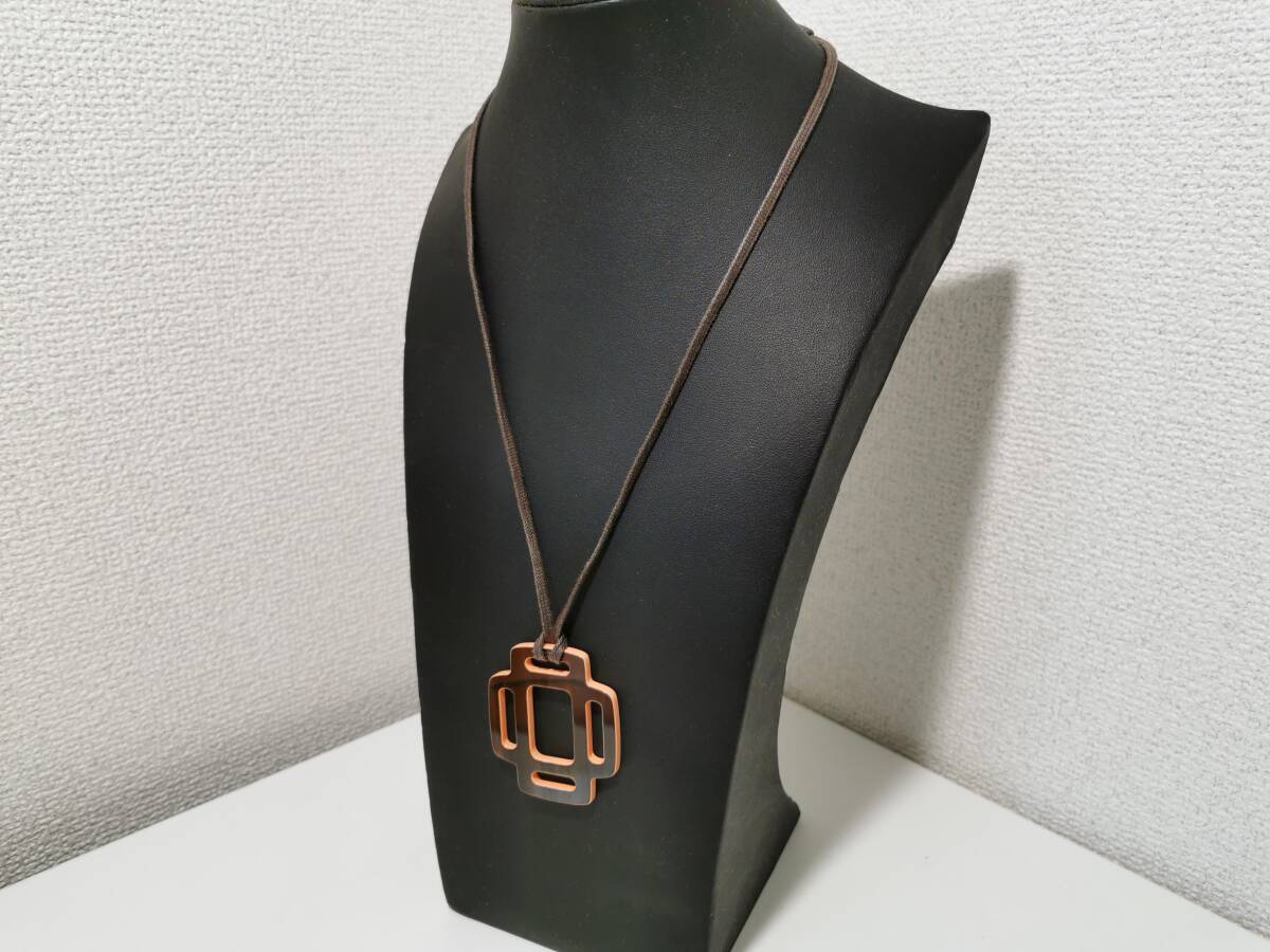 > 161021S87-1115S■HERMES エルメス■リズム バッファローホーン ネックレス チョーカー ブラウン×ピンク ペンダント