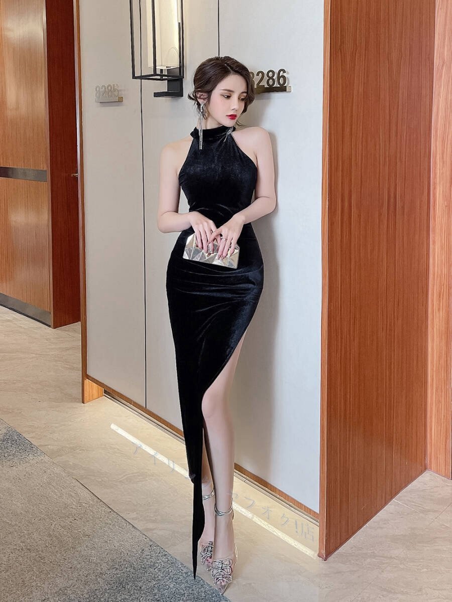 - ☆新品超セクシー美胸タイトワンピースボディに女性パーティードレスキャバクラ嬢衣装ハイウエストで細めに開いたフォーク