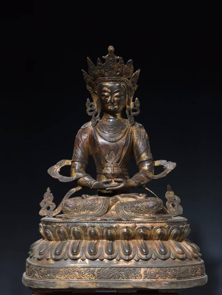 > 大尺寸63cm清・代 古銅器 秘藏 【 長壽佛】佛像造像 密宗蔵伝-古銅胎の金メッキ- お供えください- 古置物 】 唐物 古時代物 古美術品 11.10