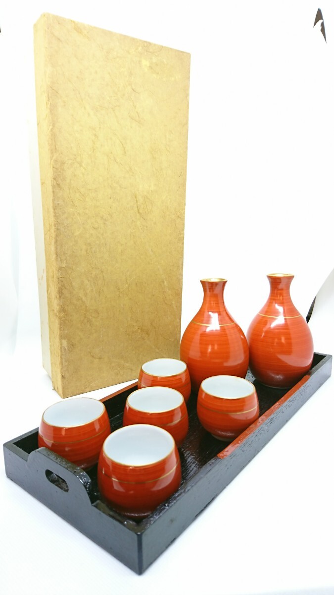 - 朱巻 金彩 酒器揃い 御盆付き 祝杯 祝い 酒器 徳利 お猪口 お酒 お正月 銘入り 和食器 箱付き 日本酒 濁り酒