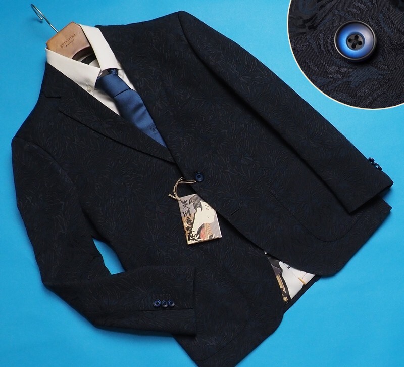 - 新品10.7万円 大手百貨店扱い 秋冬 完全日本製 [東洲斎写楽] 浮世絵裏地 ボタニカルジャガード ジャケット/ブレザーS(AB4)紺(B) 3251060