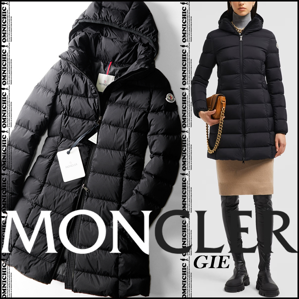 - 人気モデルGIE■国内正規品/新品【MONCLER】モンクレールワッペンロゴ高級感抜群ミドルダウンコートジャケット00/XS/ブラック/フード脱着