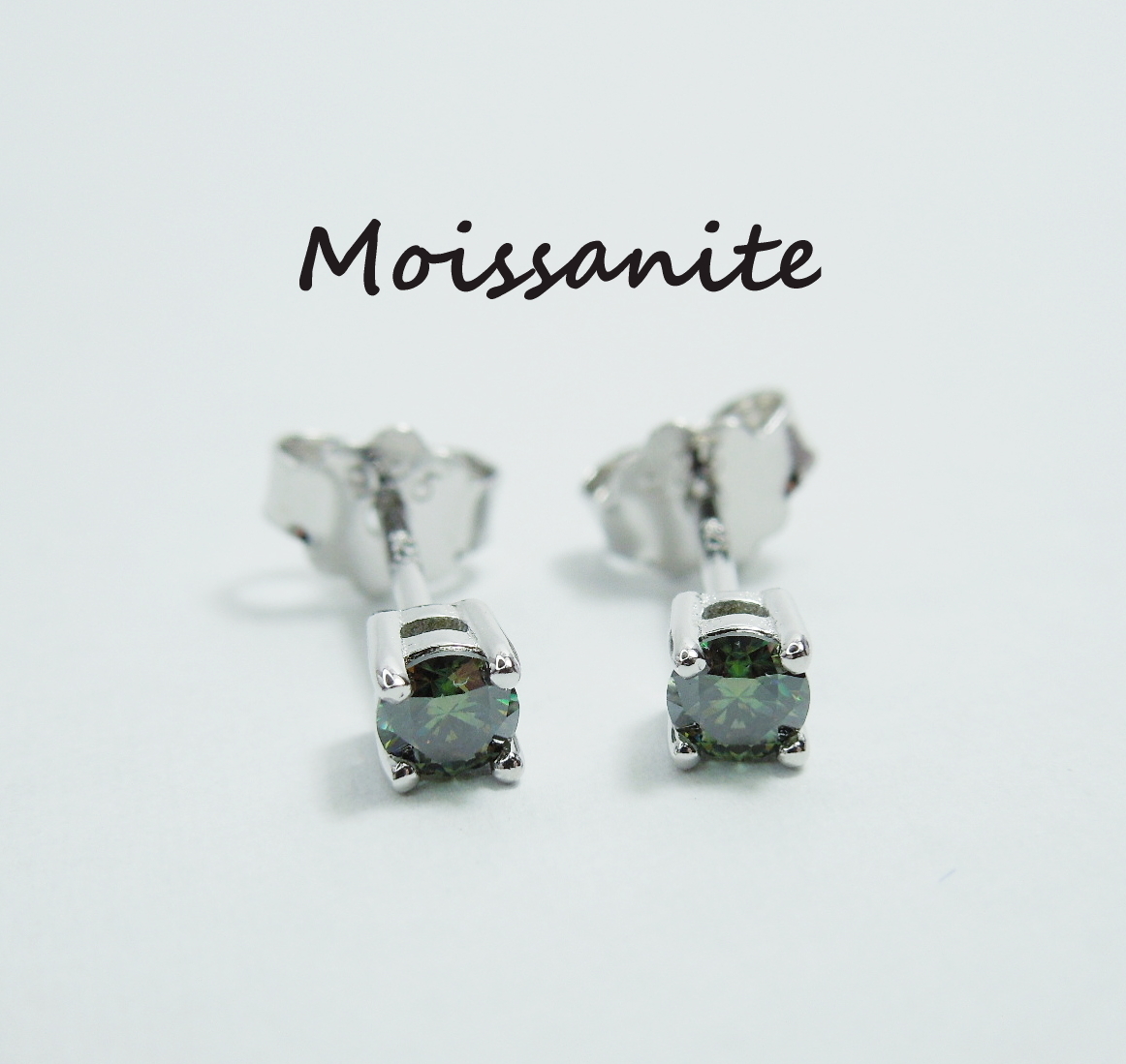- 0.1ct×2 3mm グリーン モアサナイト ピアス シルバー S925 左右合計0.2ct シンプル 1粒ピアス 丸型 緑 ペアピアス カラーモアサナイト