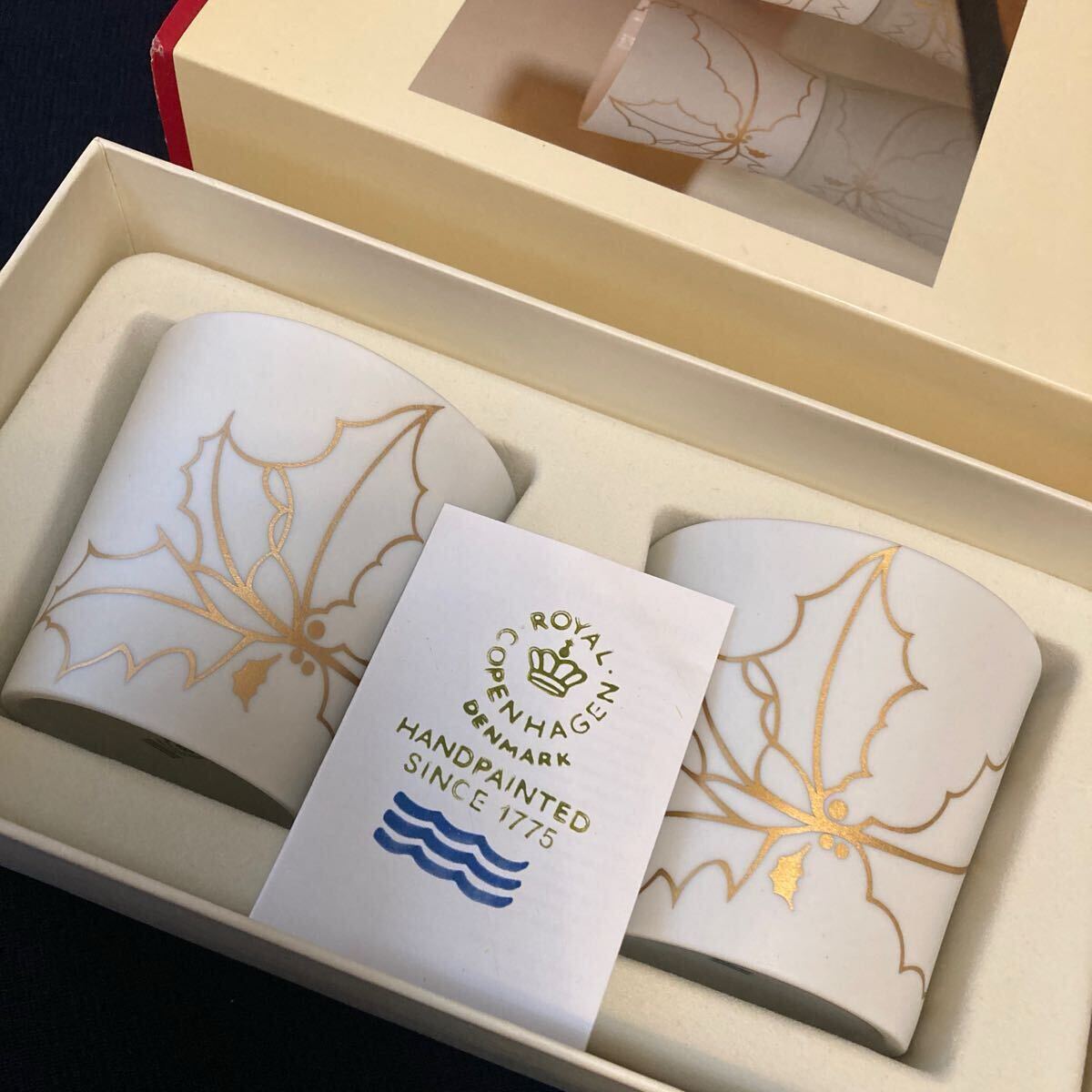 - ロイヤルコペンハーゲン 洋食器 ペア カップ 白×ゴールド 柊 クリスマス フリーカップ キャンドルホルダー テーブルウェア 未使用 元箱入