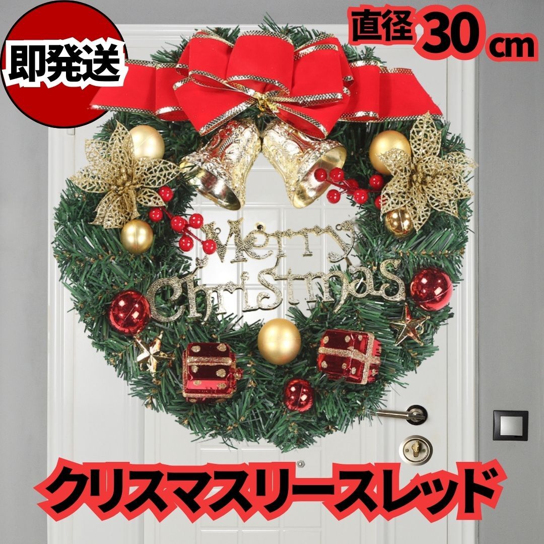> クリスマスリース レッドリボン 玄関ドア 扉飾り 30cm オーナメント ジングルベル 壁掛け 星 スター もみの木 ボックス ボール Xmas ツリー