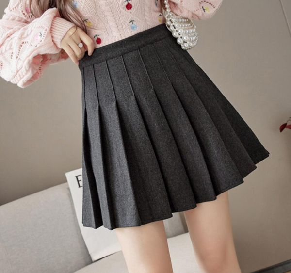 - 秋冬推薦 / ミニスカート レディース ミディアム丈 ショート プリーツスカート ラシャ 厚手 膝上 ハイウエスト 美脚 着痩せ Aライン / 灰