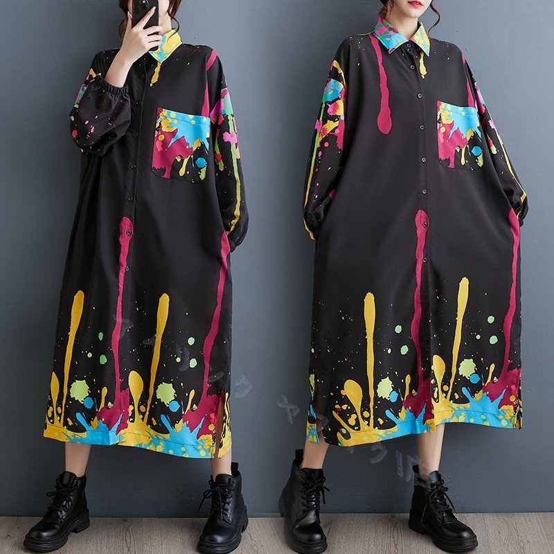 - ☆新品ワンピース ゆったり Aライン 大人可愛 カラフル ロングカーディガン