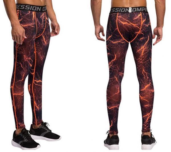 - コンプレッションインナー 稲妻模様 レッド 』 スパッツ レギンス ジム ヨガ ウェア タイツ メンズ レディース DJ518