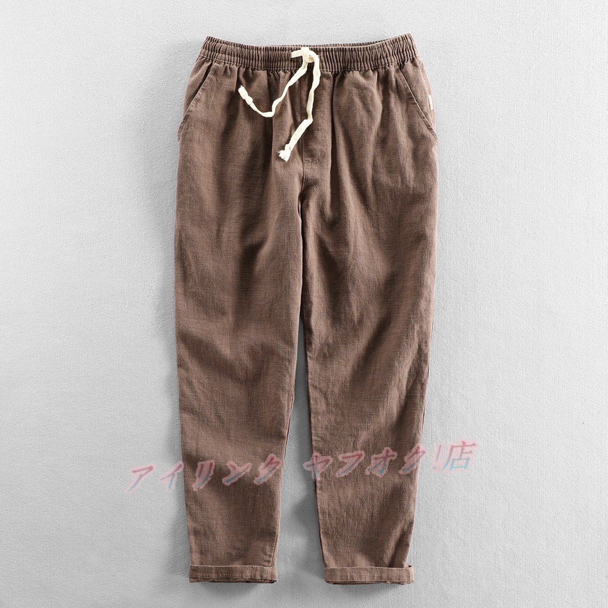 > ☆新品リネンパンツ メンズ 綿麻 スラックス イージーパンツ 無地 チノパン 春夏秋 ストレート 紳士服 冷感 快適 七色選択可 コーヒー