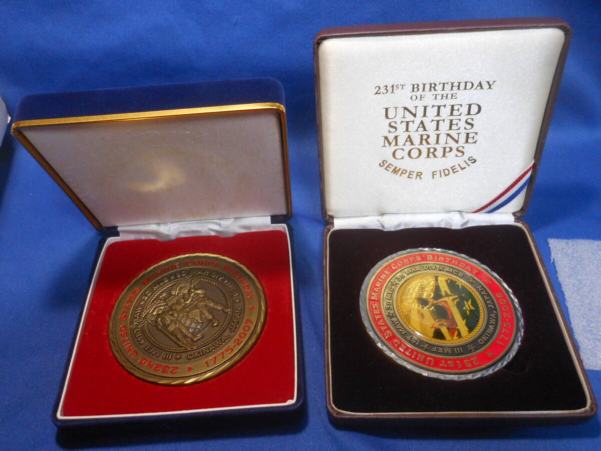 - 米国海兵隊232,231回創立記念メダル 質量145g,196g 径8cm 厚さ5mm、2個セット新品-241120-2