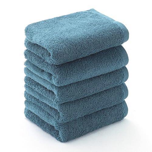 > ● タオルファクトリーラボ ふんわり 吸収 フェイスタオル 5枚セット [エアリー] セルリアンブルー 軽い 薄手 プチプラタオル 002