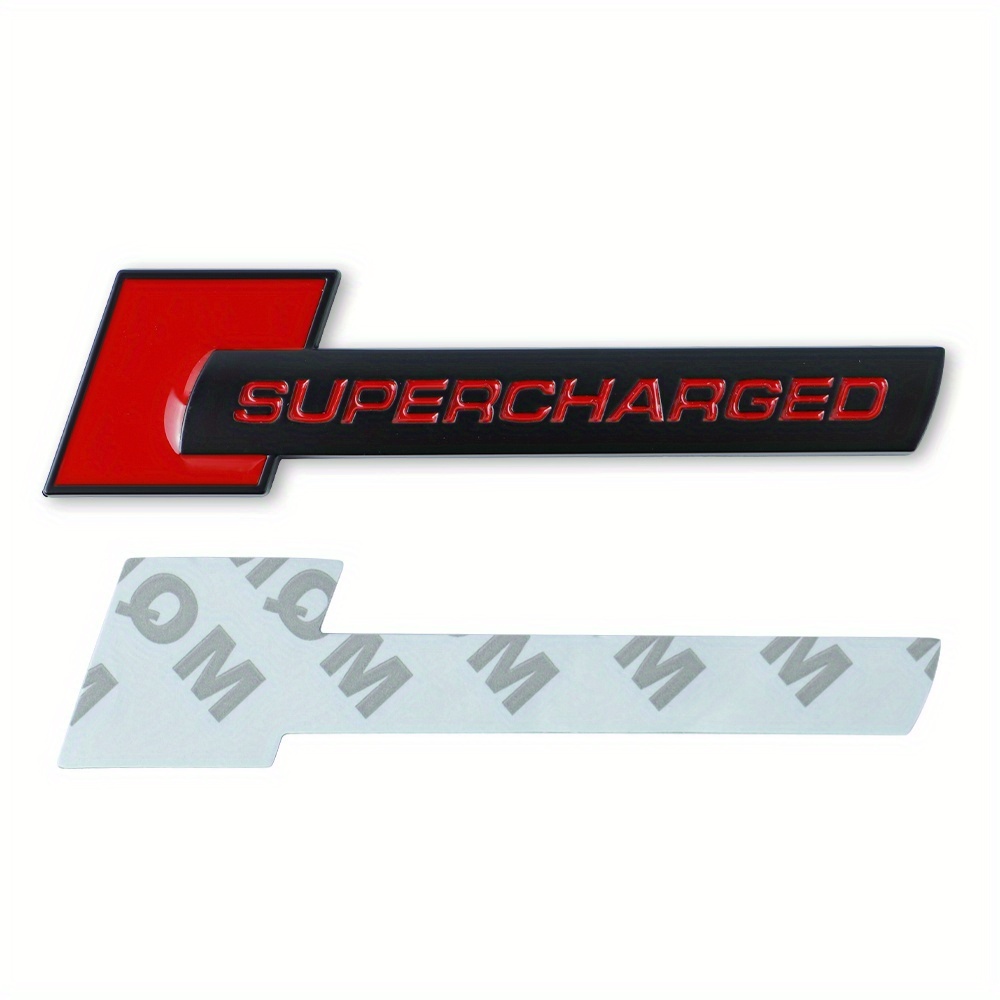 > エンブレム SUPER CHARGED ステッカー 金属 スーパーチャージド 10.5cm レッド ブラック 車用 ロゴ おしゃれ かっこいい 外装 シール t3565