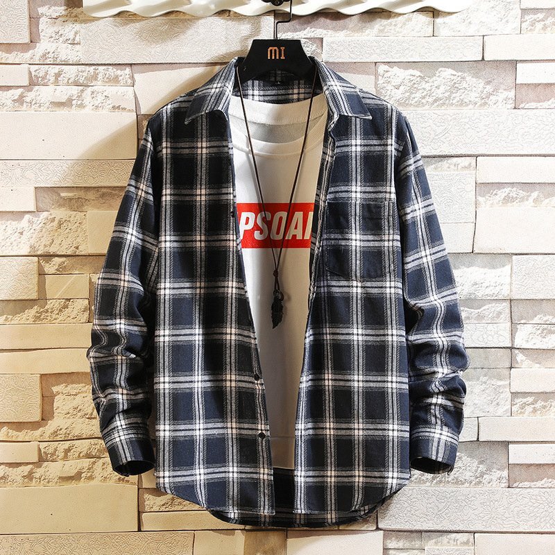 - OHJ617★メンズ長袖シャツ カジュアルシャツアウター 長袖シャツ トップス ワークウェア チェックシャツ ストライプシャツ ネイビー3XL