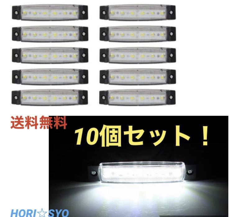 - 最新改良 送料無料 10個セット サイドマーカー LED ランプ 片側6連 28Vホワイト トラック