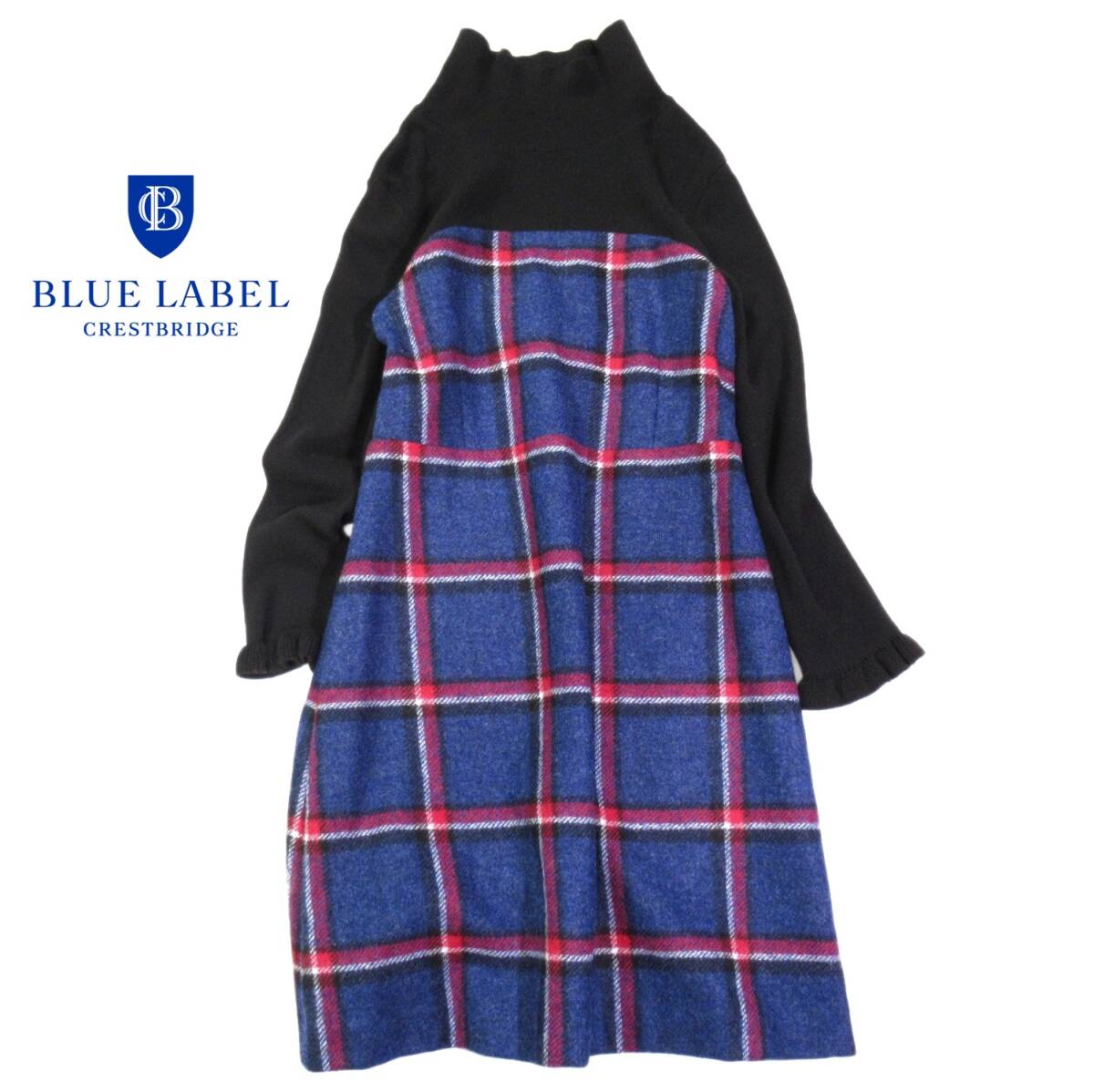 > ブルーレーベル クレストブリッジ BLUE LABEL CRESTBRIDGE MOON社ツイード使用 後ろレースアップ ニット ワンピース 38