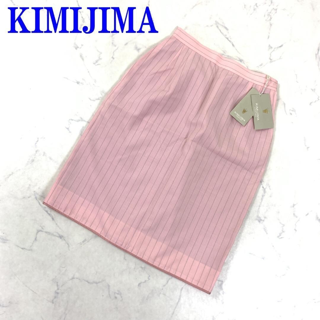- 新品タグ付き キミジマ ひざ丈スカート ウールKIMIJIMA ストライプ 裏地有 タイト ピンク 9 C1566