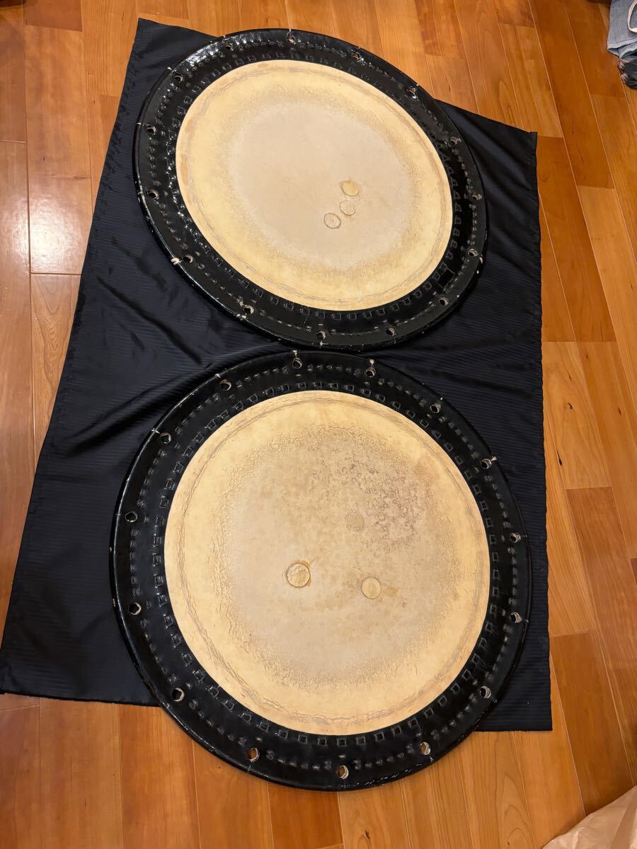 - 価格30万円程●和太鼓 桶胴太鼓 2尺3寸70cm 牛皮 張り替え用 両面 二枚