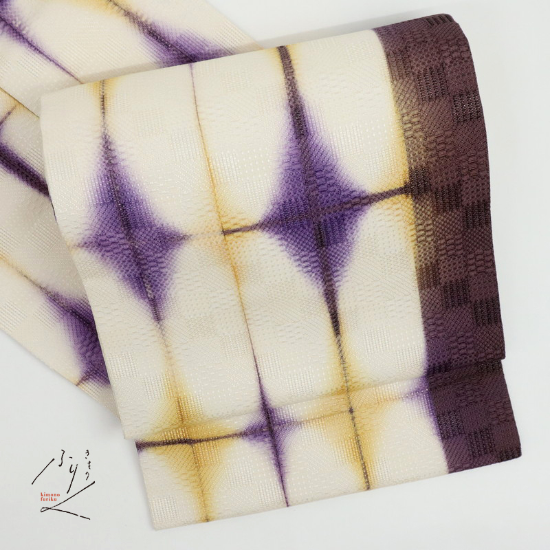 - 【針子*定額】お仕立て上がり『桐生絞』九寸名古屋帯■白地片寄せ菱◆正絹着物◆nNS5-16