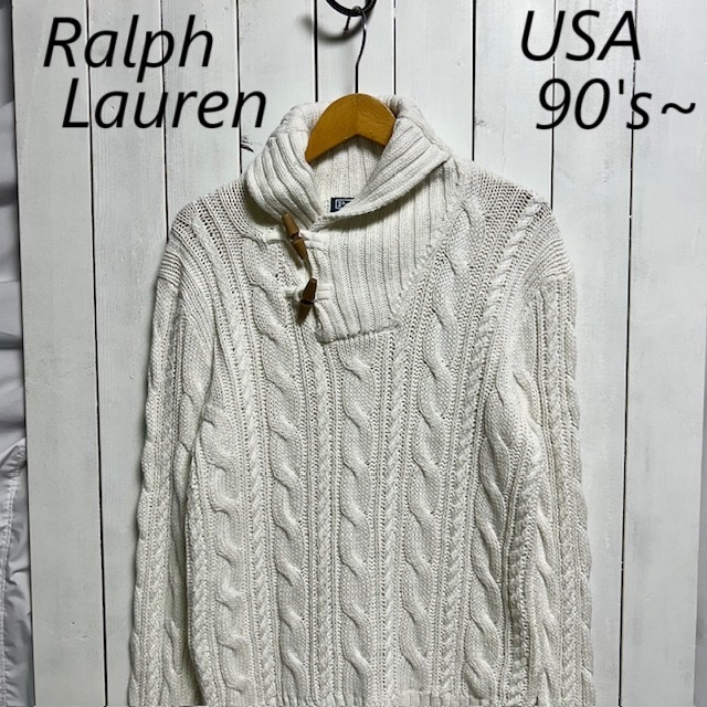 - USA古着 90s~ Ralph Lauren リネンコットン ざっくり ケーブルニットセーター M 白 ラルフローレン オールド アメリカ古着 トグル襟 ●274