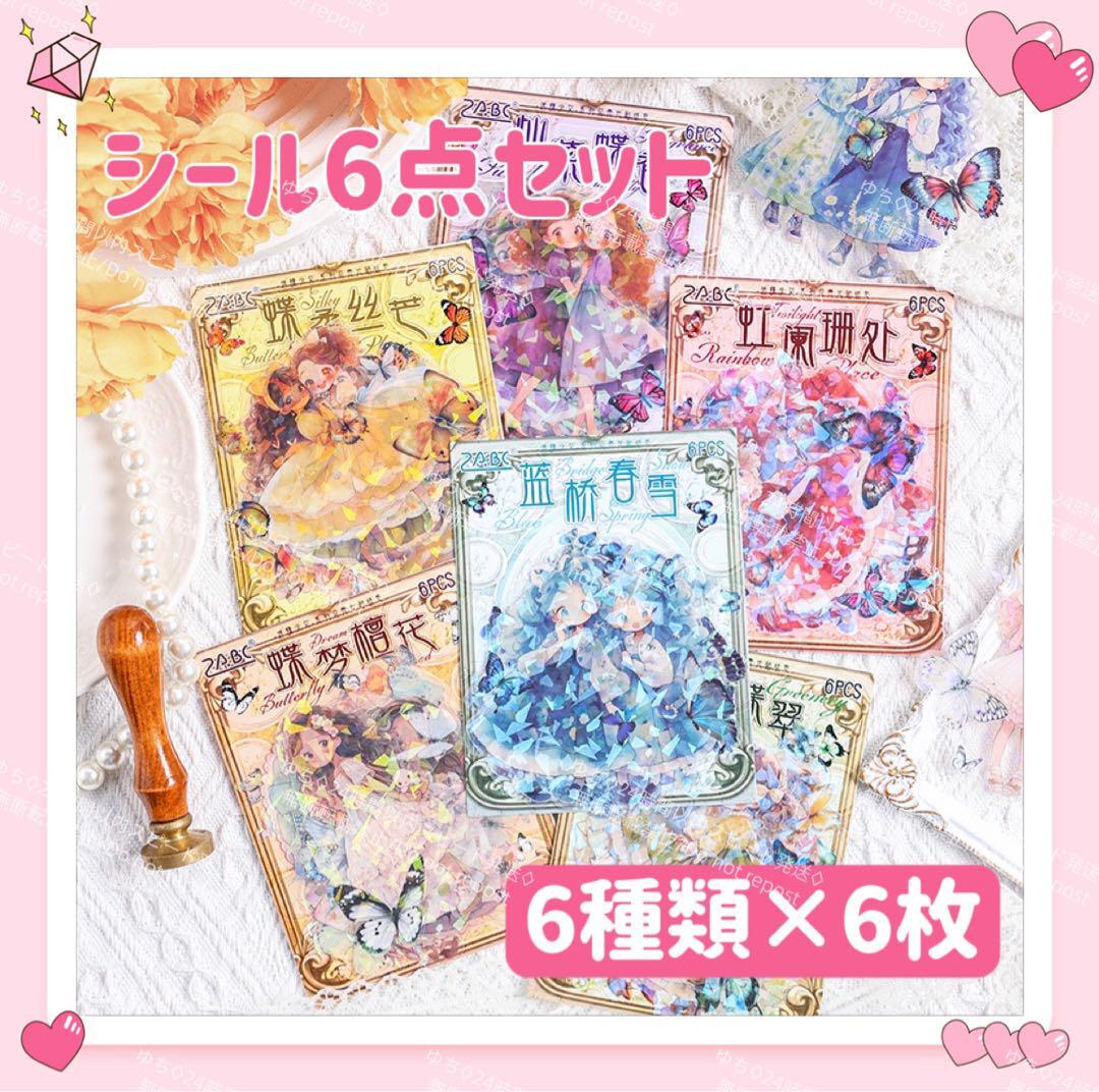 - シール ステッカー 36枚 6種6枚 PET 防水 デコ コラージュ アレンジ 素材 コレクション 可愛い 女の子 ②