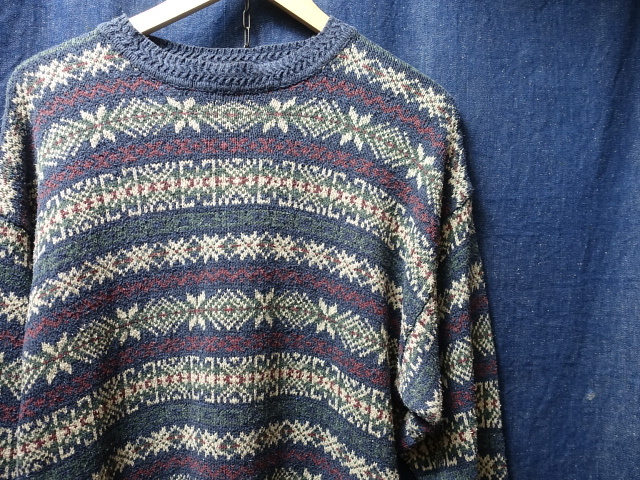 > USA アメリカ 古着 ROUNDTREE & YORKE ノルディック 雪柄 シルク コットン ニット セーター S / フェアアイル / 215