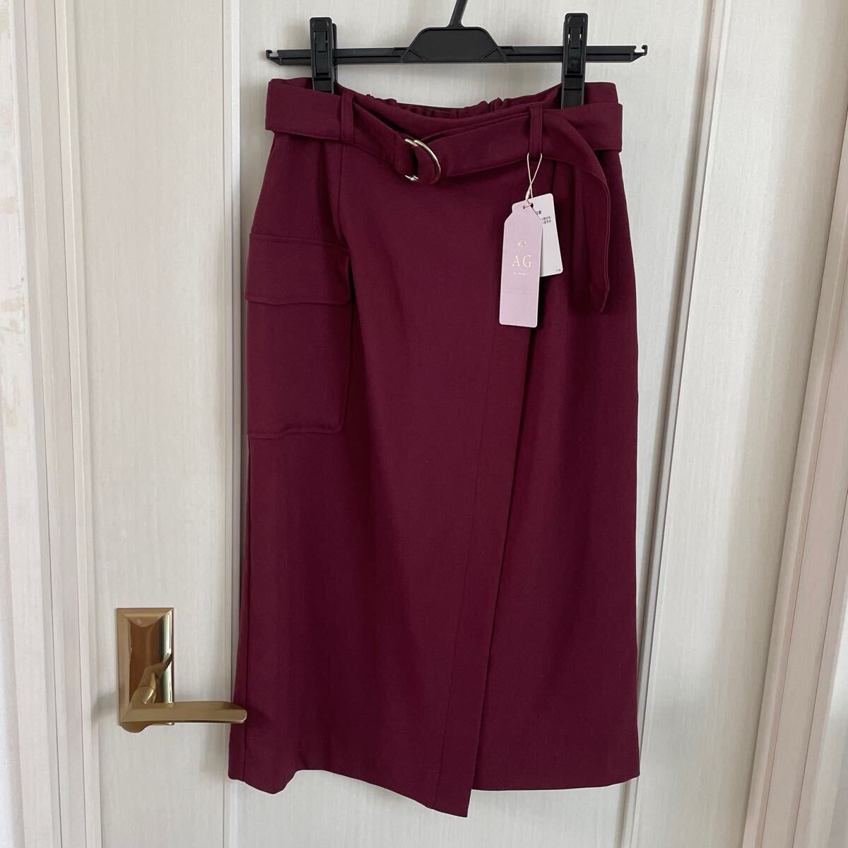 - 新品タグ付きAG by aquagirlのタイトスカート エンジ ワインレッド タイト