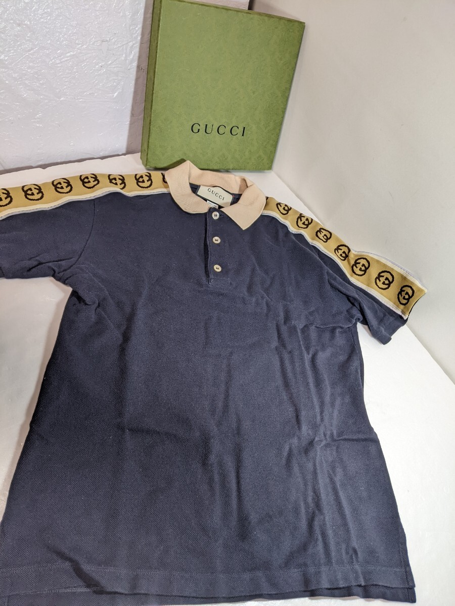 - GUCCI グッチ インターロッキングGポロシャツ/XS/コットン/ネイビー/