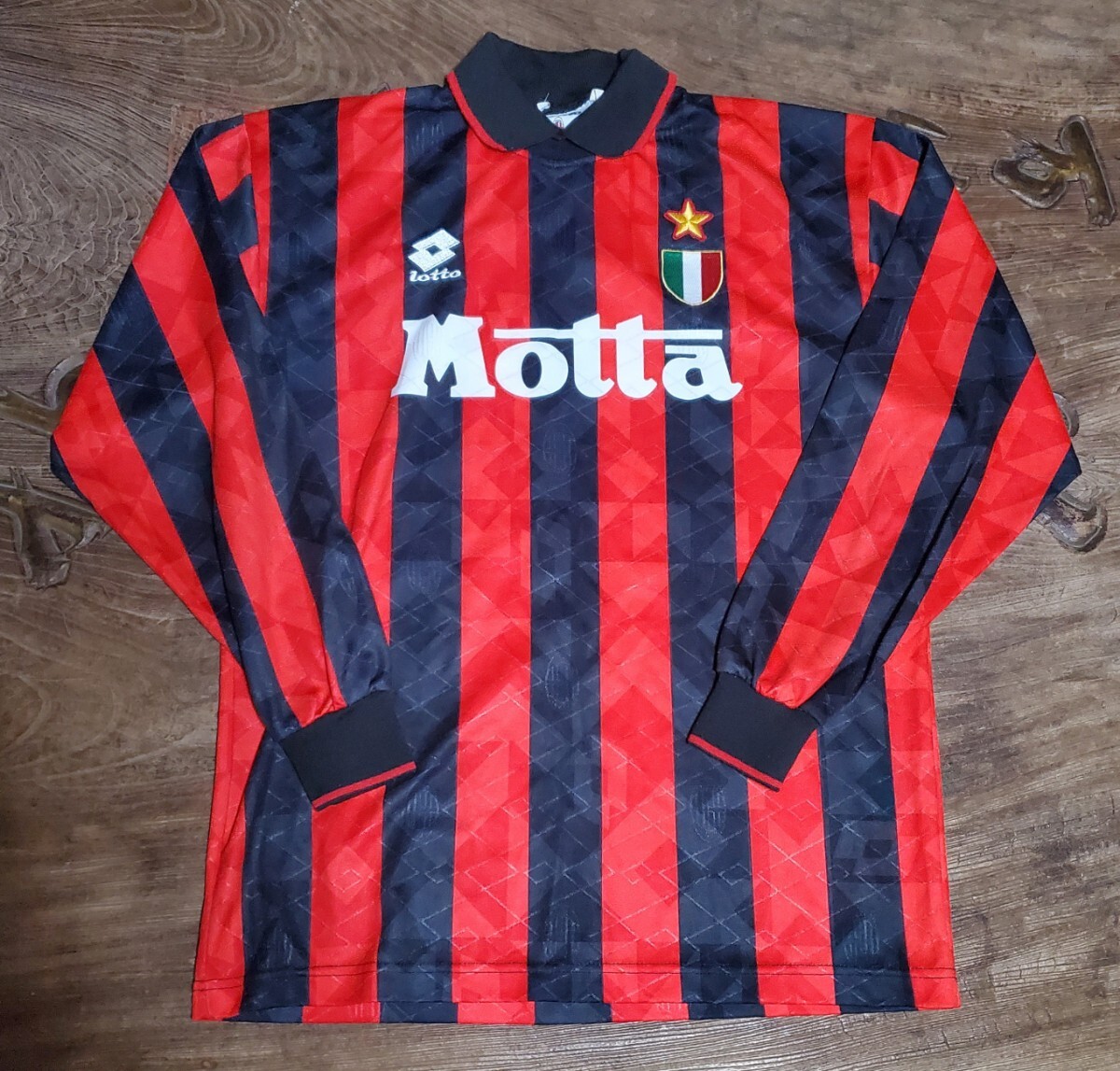 - 1993-94 セリエA 3連覇 ACミラン 長袖 Lotto MADE IN ITALY 検) SERIE A SCUDETTO ACM MILAN AUTHENTIC L/S VAN BASTEN GULLIT MALDINI Y2K