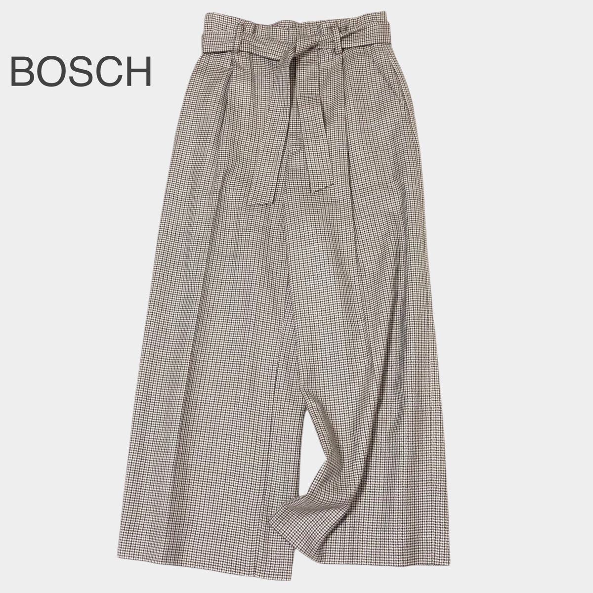 - 美品 ボッシュ BOSCH 千鳥格子 ウール混 ワイドパンツ 36 レディース