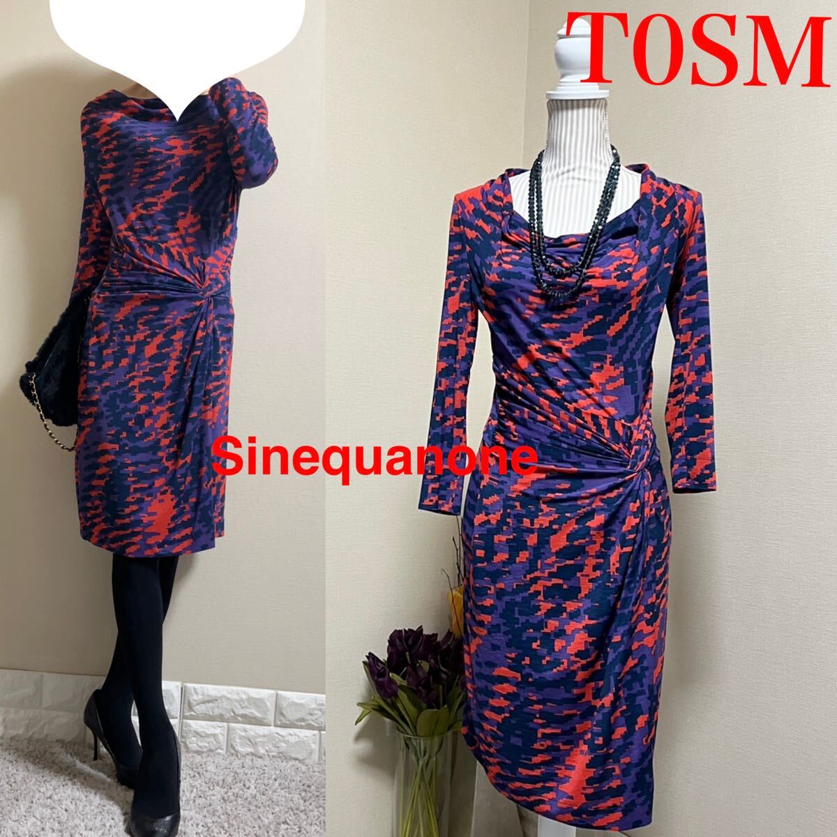 > 美品!Sinequanone ジオメトリック スタイル美人 ワンピース SM エレガント ストレッチ ジャージードレス 総柄 インポート