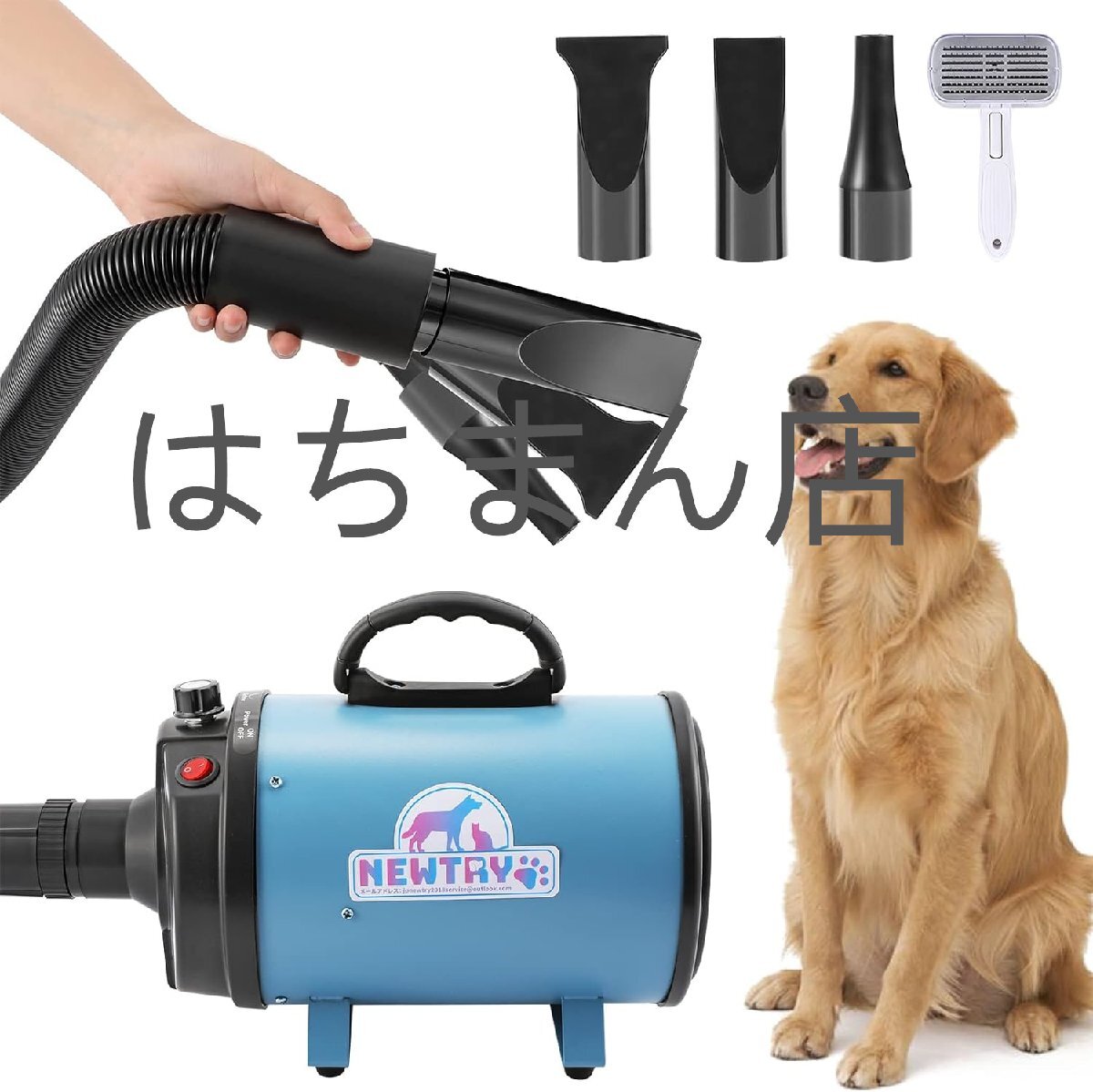 - ペットドライヤー 犬用 ペット用 ドライヤー ブロワー 送風機 無段階速度制御 3つのノズル付き 大風量 騒音低減 110V/700-2000W(ブルー)